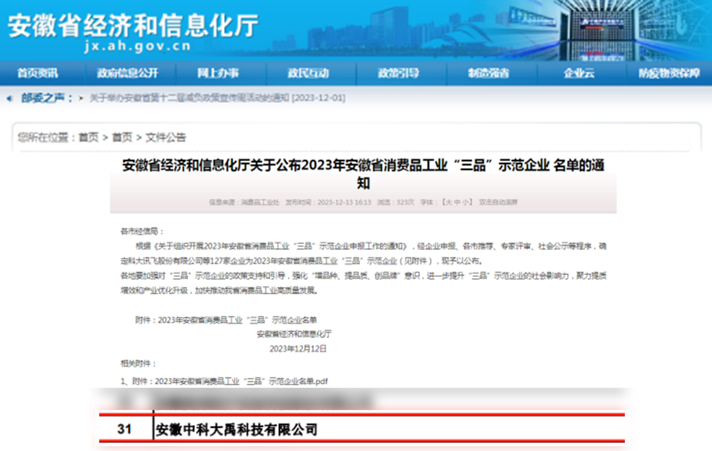 入選2023年安徽省消費(fèi)品工業(yè)“三品”示范企業(yè)