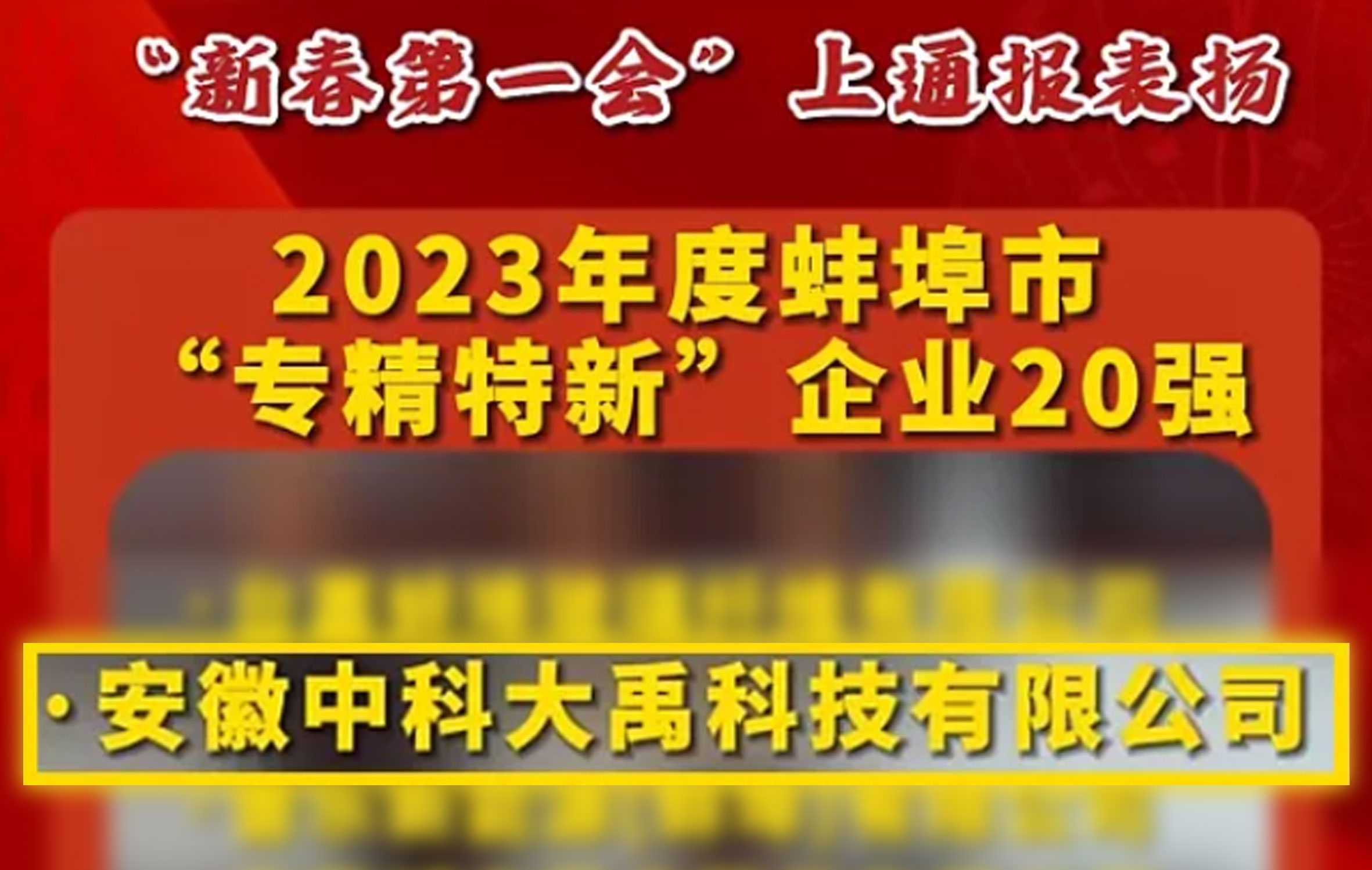 中科大禹榮登2023年度蚌埠市“專(zhuān)精特新”企業(yè)20強(qiáng)